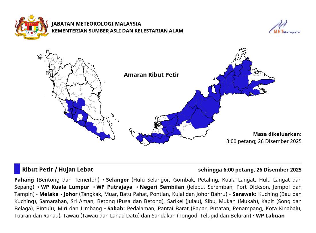 Jabatan Meteorologi Malaysia (MetMalaysia) mengeluarkan amaran ribut petir Read more...