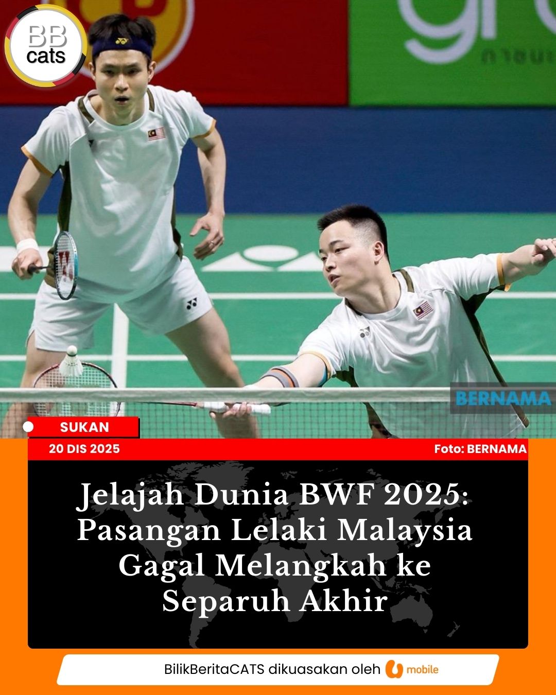 Jelajah Dunia BWF 2025: Pasangan Lelaki Malaysia Gagal Melangkah ke Separuh Akhir