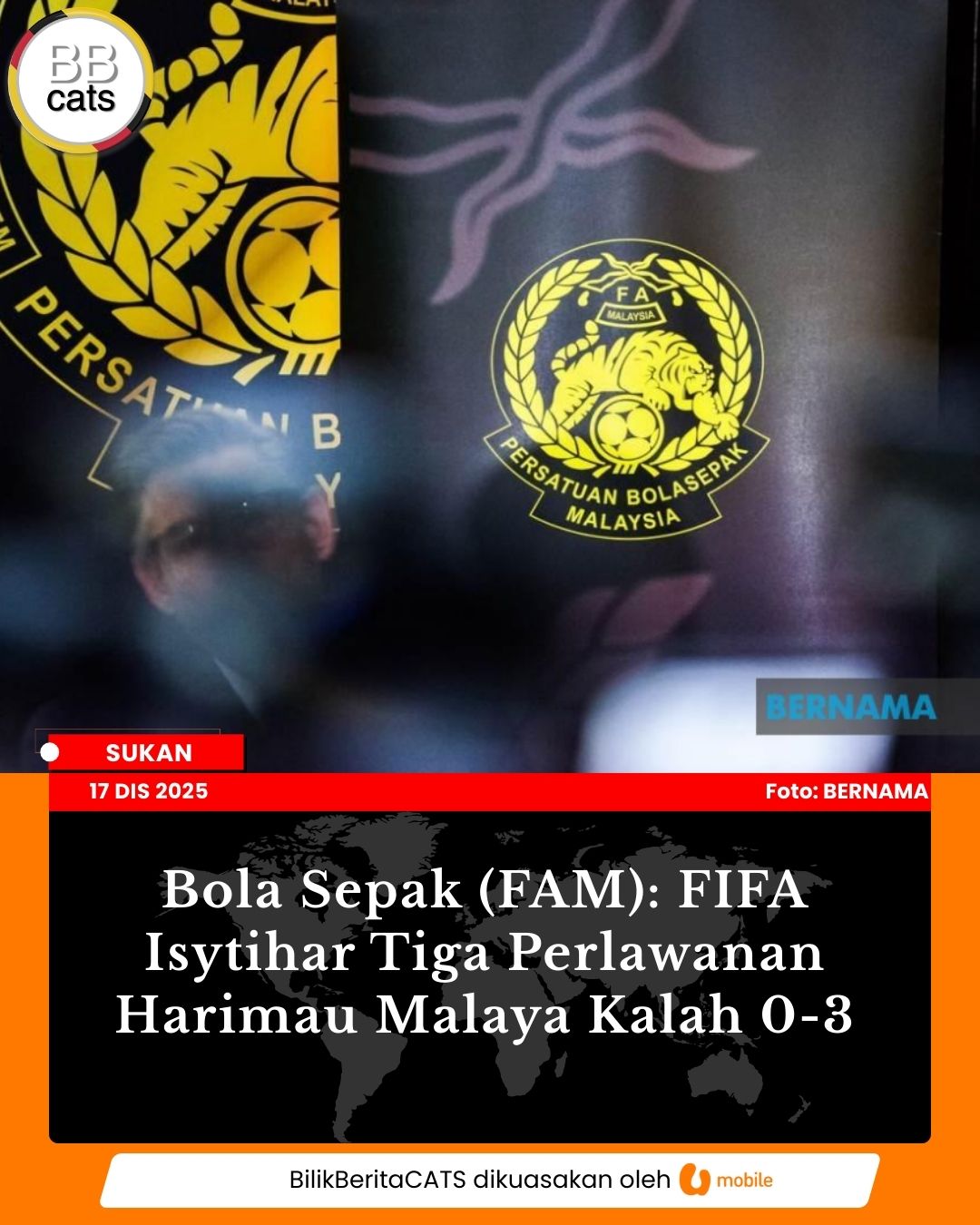 Bola Sepak (FAM): FIFA Isytihar Tiga Perlawanan Harimau Malaya Kalah 0-3