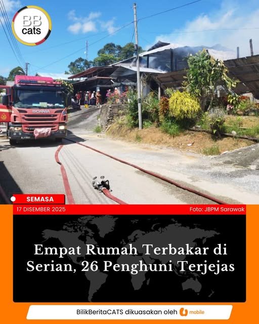 26 penghuni terjejas selepas empat buah rumah musnah dalam kebakaran di Kampung Murud Plaman, Serian. Read more...