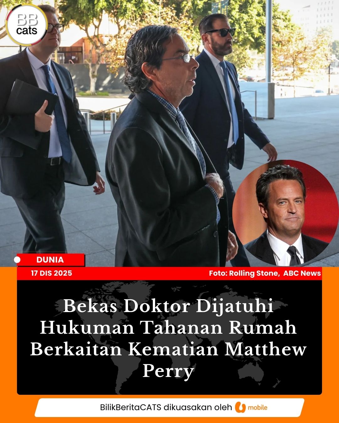 Bekas Doktor Dijatuhi Hukuman Tahanan Rumah Berkaitan Kematian Matthew Perry