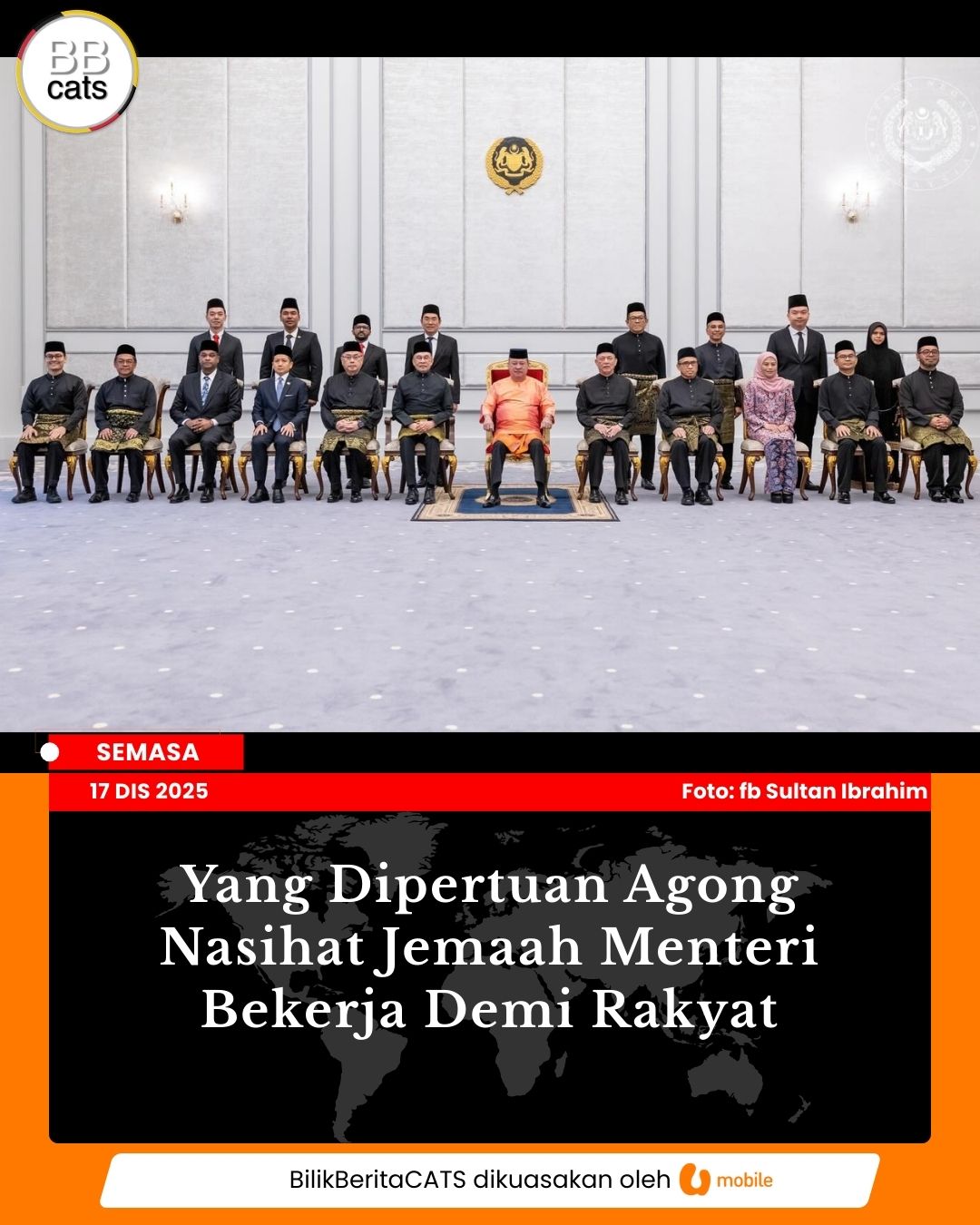 Yang di-Pertuan Agong Sultan Ibrahim menasihatkan Jemaah Menteri agar mengutamakan rakyat, menjaga integriti serta bekerjasama secara efektif Read more...