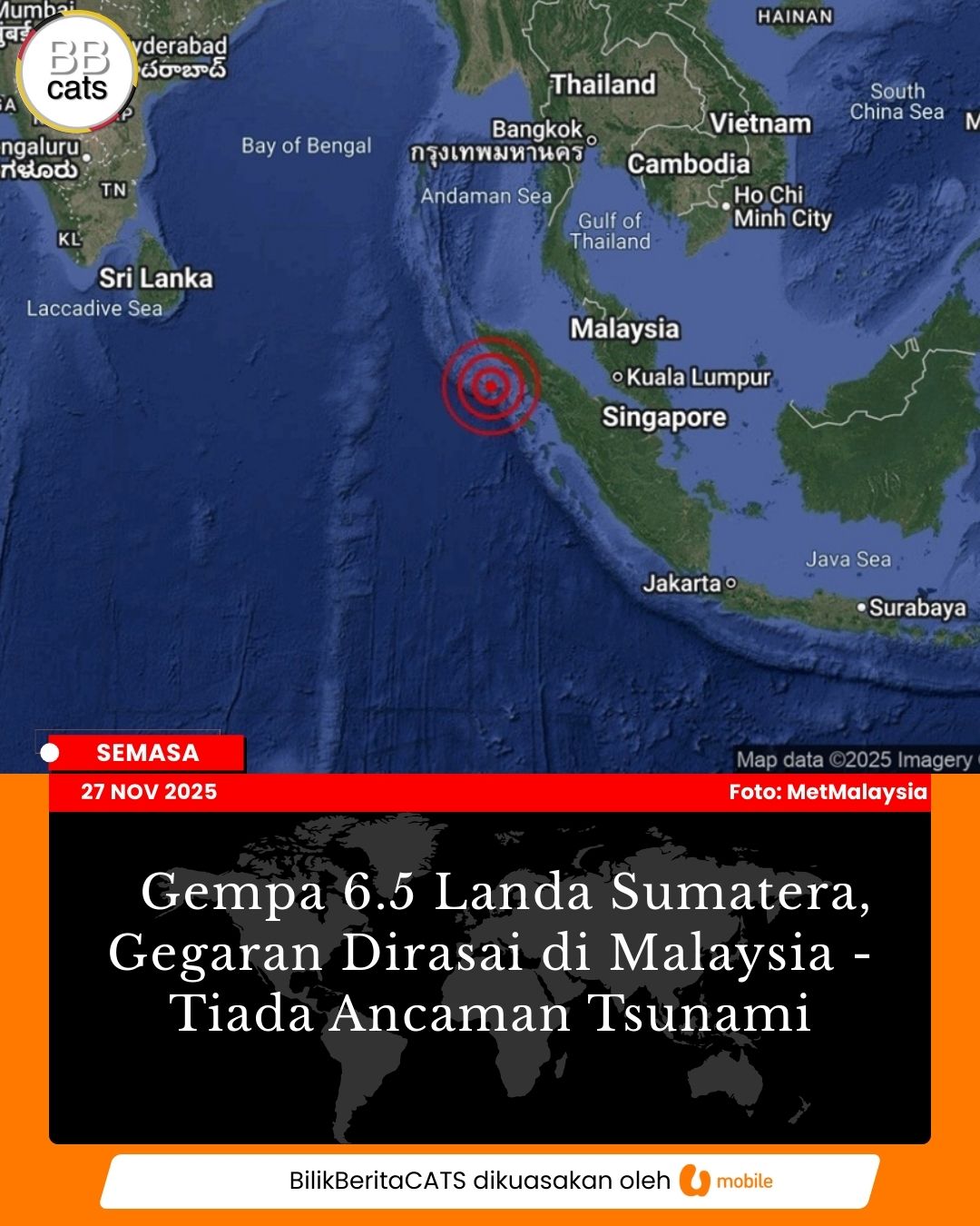 Gempa 6.5 Landa Sumatera, Gegaran Dirasai di Malaysia - Tiada Ancaman Tsunami